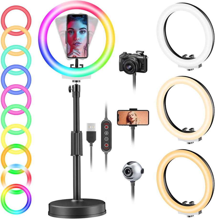 PEYOU Handy Ringlicht mit Stativ,[2025 Upgrade] 42 RGB-Modi Tisch LED Ring Light Kamera Handystativh