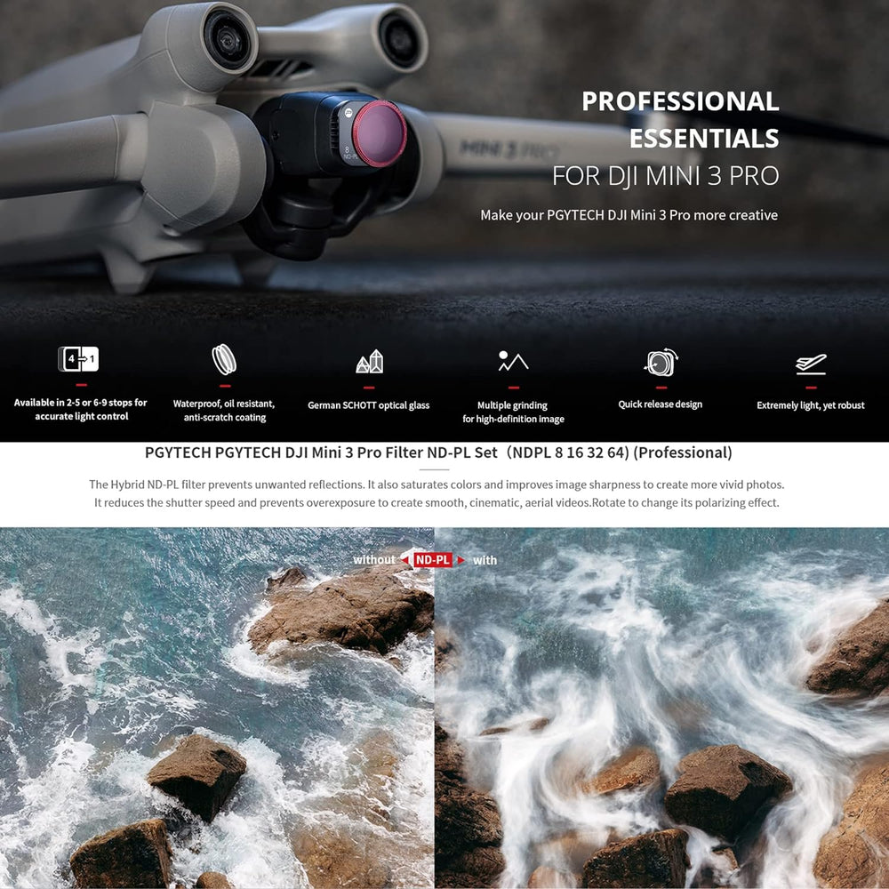 PGYTECH Mini 3 Pro Filter UV CPL ND NDPL Linsenfilter für DJI Mini 3 Pro (4pcs (ND8PL+ND16PL+ND32PL+