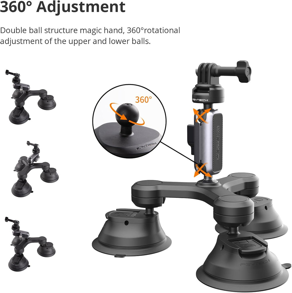 PGYTECH CapLock Dreifach-Saughalterung für DJI OSMO Action 4/3/2, Gopro Hero 12/11/10/9 mit 1/4"-20