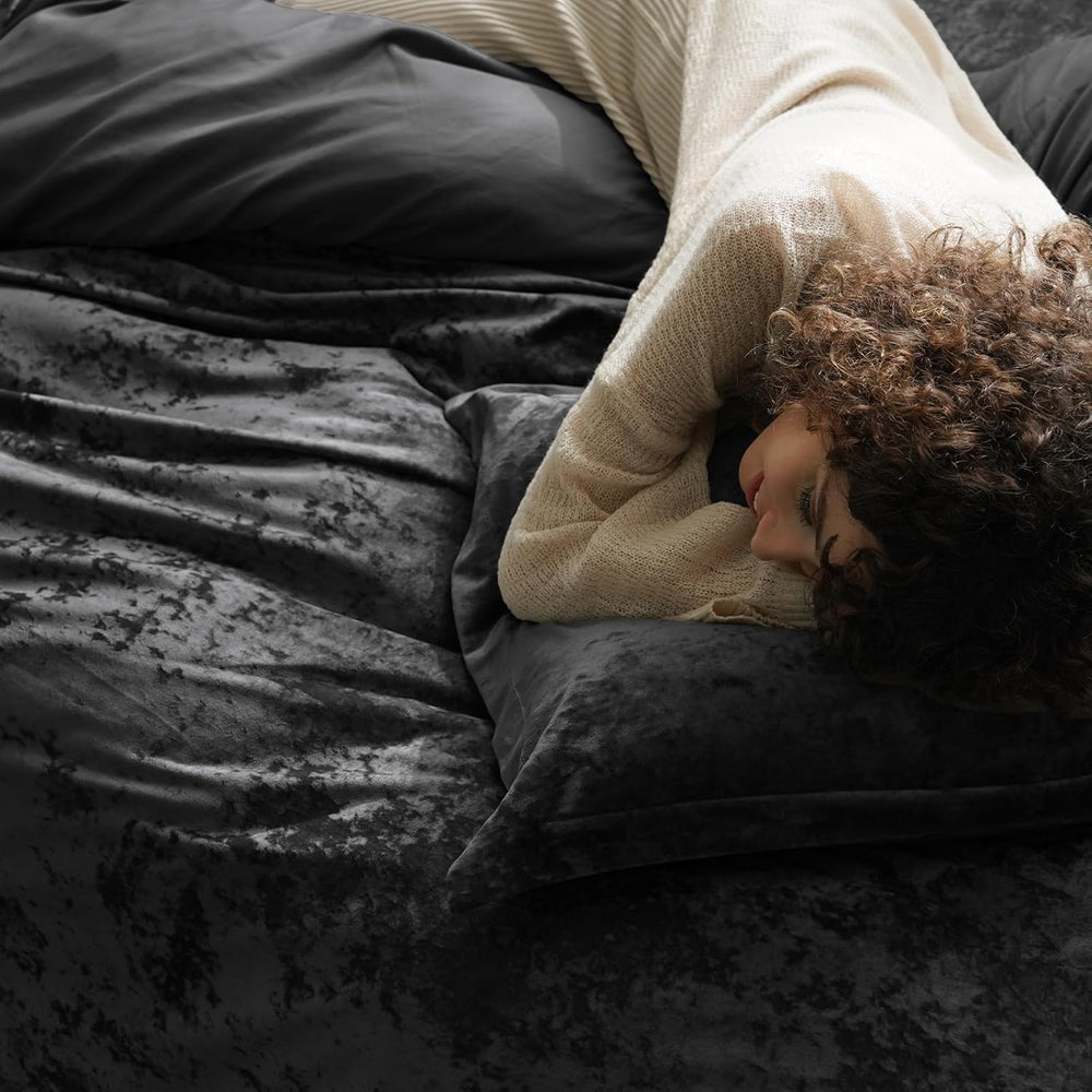 PHF P Velvet Duvet Cover Set Black S*2 DE Black 135 x 200 cm (X2), Black 135 x 200 cm (X2)