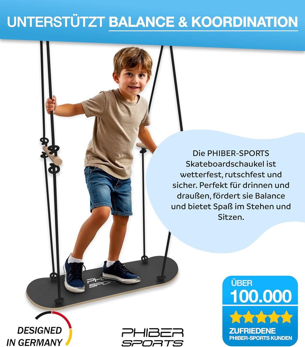 PHIBER-SPORTS Skateboard Schaukel Outdoor Kinder - Langlebig, Wetterfest, Anti-Rutsch, Stehen und Si