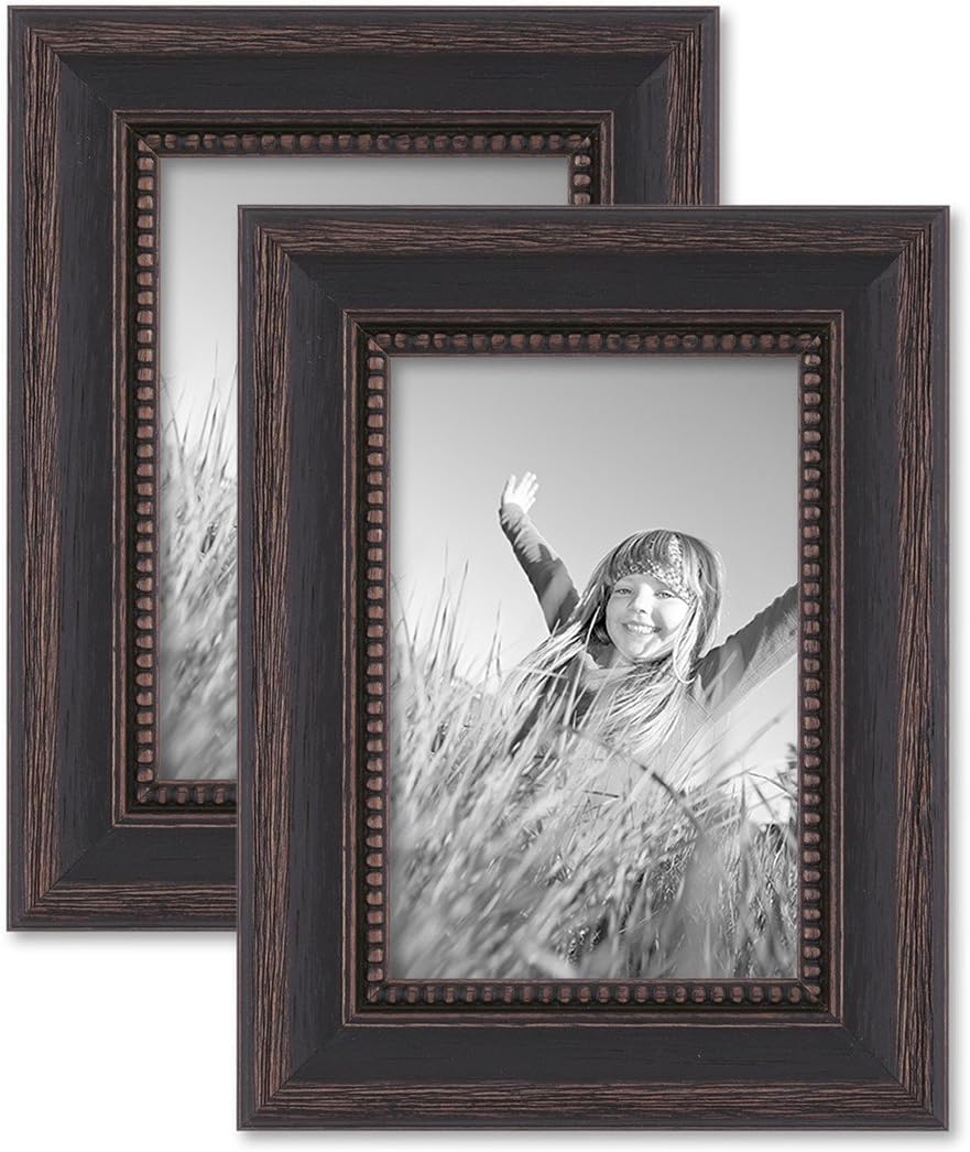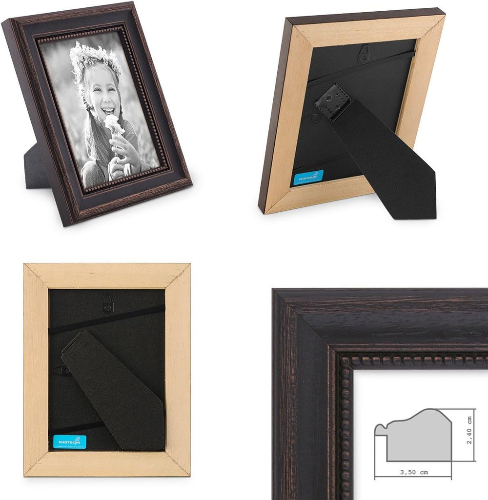 2er Set Bilderrahmen 10x15 cm Shabby-Chic Landhaus-Stil Dunkelbraun Massivholz mit Glasscheibe und Z