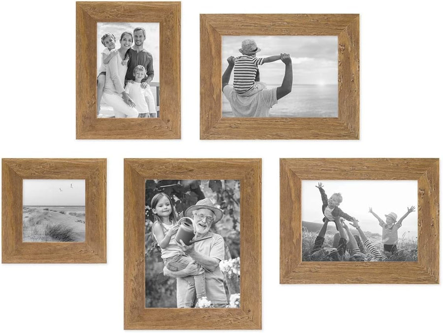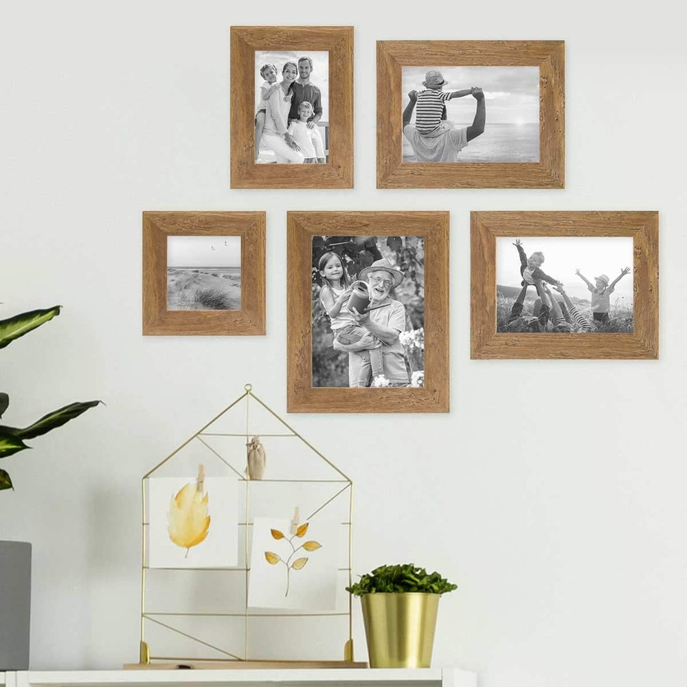 Bilderrahmen-Set Holz Eiche-Optik, 5er Rahmenset No.1 Echtholz-Rahmen rustikal, Strandhaus, Made in
