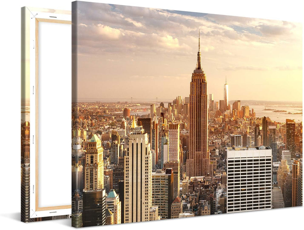 PICANOVA – Bild auf Leinwand Manhattan Empire State Building 100x75cm – Leinwandbild – Premium Leinw