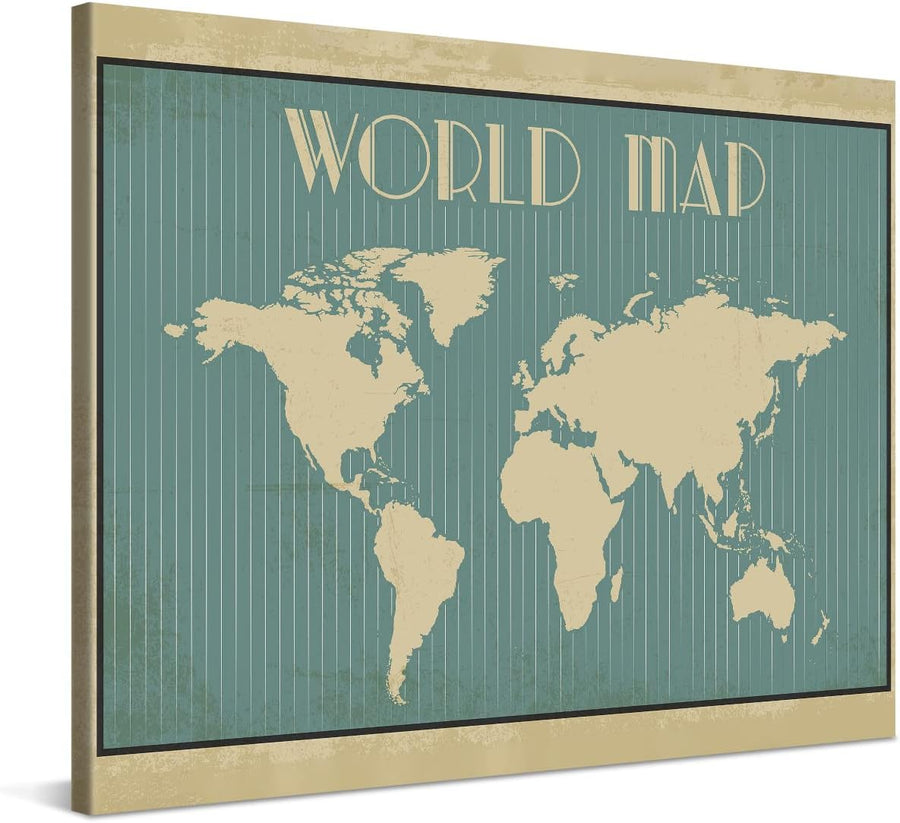 PICANOVA Weltkarte Art Deco 90x60cm - Premium-Leinwand-Kunstdruck - Leinwand-Druck-Wand-Kunst-Dekor-
