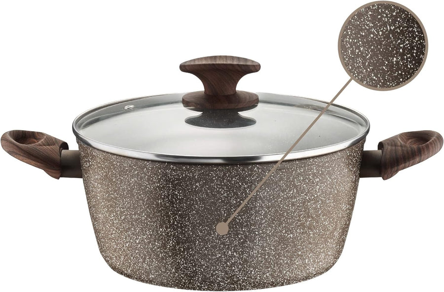 Pintinox Kasserolle aus Aluminium, Serie Natura, antihaftbeschichtet, Steinoptik, Griff in Holzoptik