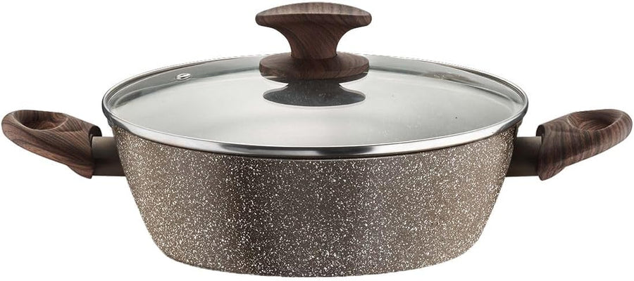 Pintinox Niedrige Kasserolle aus Aluminium, Serie Natur, Antihaftbeschichtung, Steinoptik, mit Glasd