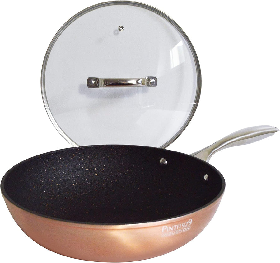 Pintinox Wok Metallic mit Deckel, Aluminium, 28 cm, Antihaftbeschichtung, Induktion