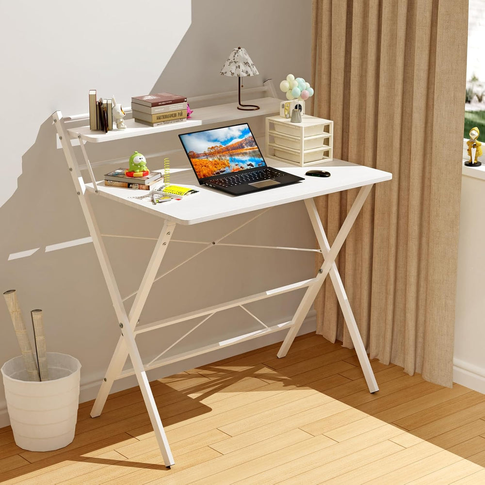 PIPIPOXER 80x50cm Schreibtisch Klappbar, Klappbarer Schreibtisch mit Regal, Schreibtisch Klappbar mi