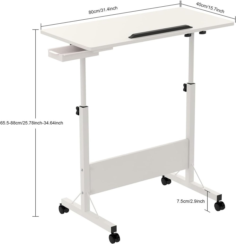 PIPIPOXER 80x40cm Laptoptisch mit Rollen, Laptoptisch Höhenverstellbarer 69-110 cm, Computertisch Mo