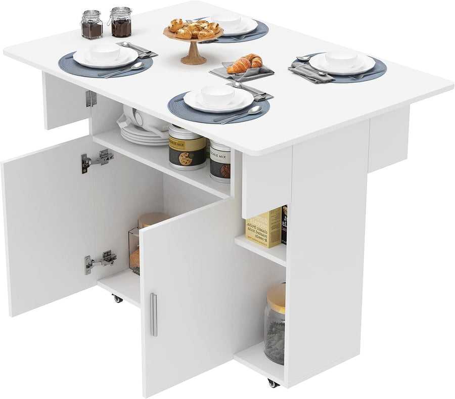 PIPIPOXER Mobiler Klapptisch, Esstisch Klein Klappbar, Mobiler Küchentisch mit 4 Rädern,Tisch mit Ab