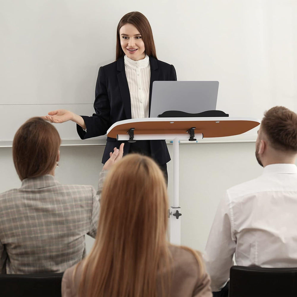 PIPIPOXER Laptoptisch Höhenverstellbar 61-91 cm, 60×40cm Mobiler Stehtisch mit 4 Rollen & 1 Stopp-Le