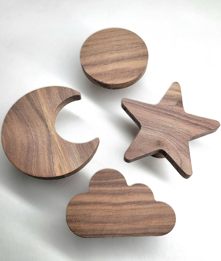PLT Sonne Mond Stern Wolke Wandhaken aus unbehandeltem Walnussholz (Sonne Mond Stern Wolke) Himmel G