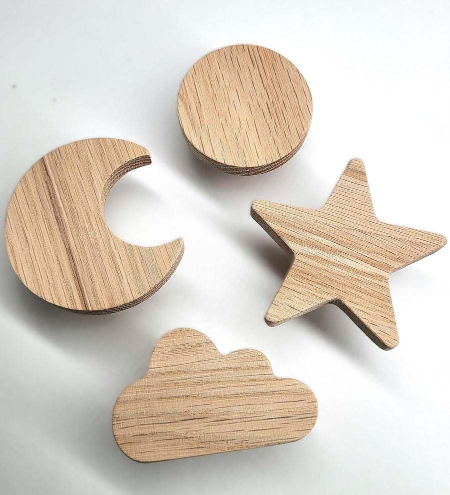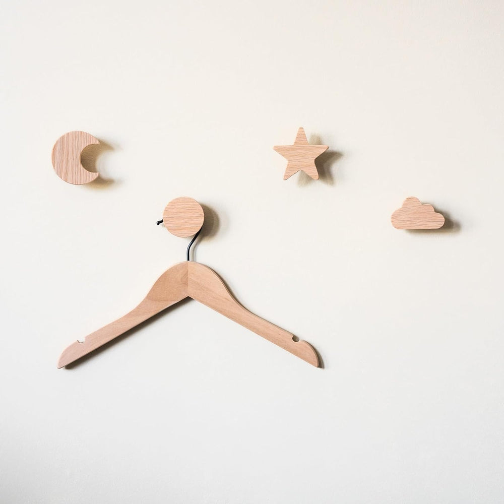 PLT Sonne Mond Stern Wolke Wandhaken aus unbehandeltem Eichenholz (Sonne Mond Stern Wolke) Himmel Ga