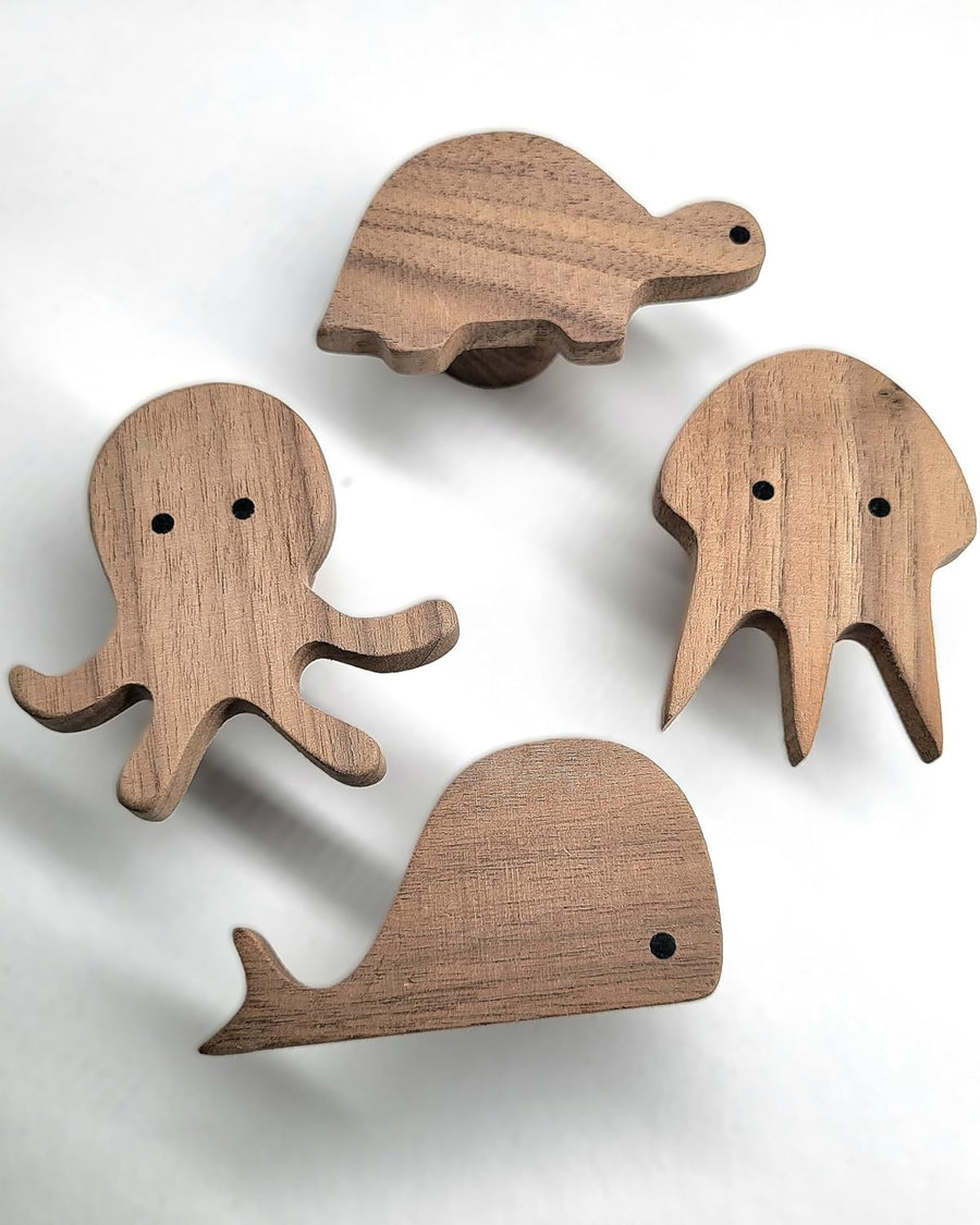 PLT Meerestiere Wandhaken aus unbehandeltem Walnussholz (Krake Qualle Wal Schildkröte) Garderobe Ein