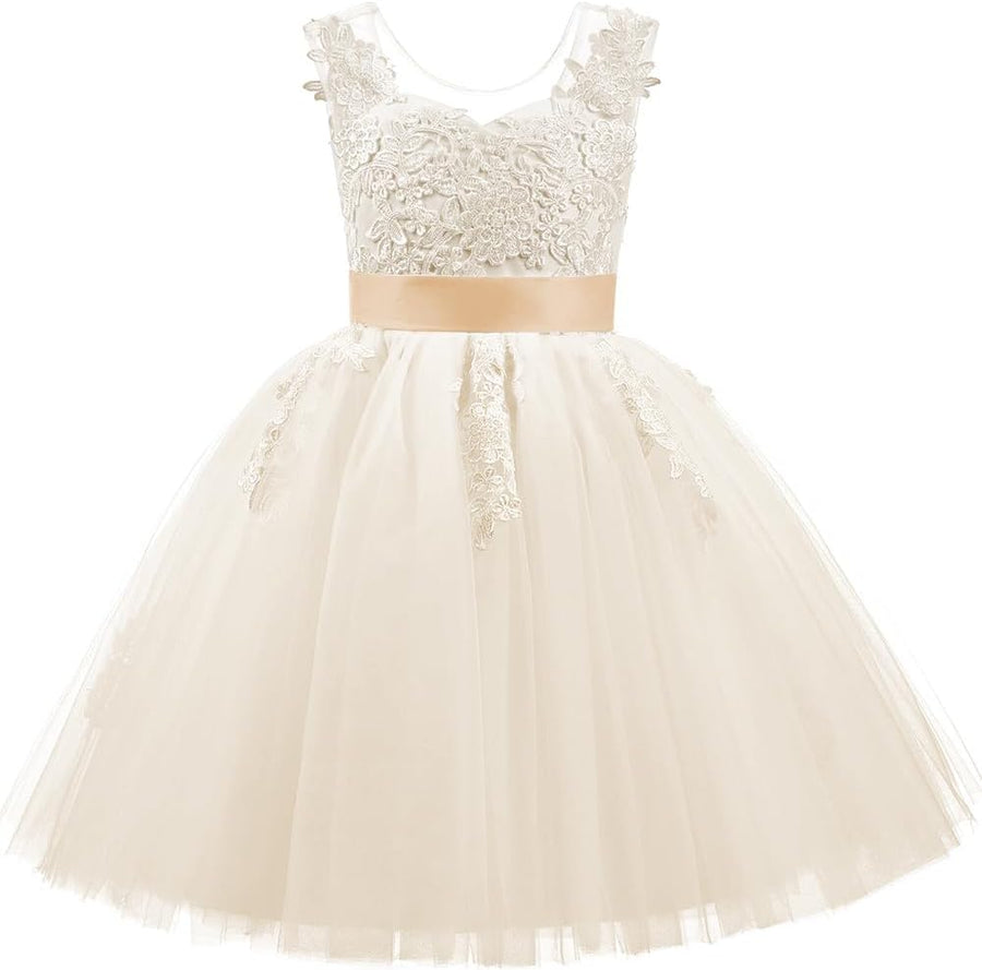 PLWEDDING Spitze V zurück Tüll Blumenmädchen Kleid Junior Mädchen Brautjungfer Hochzeit Partykleider