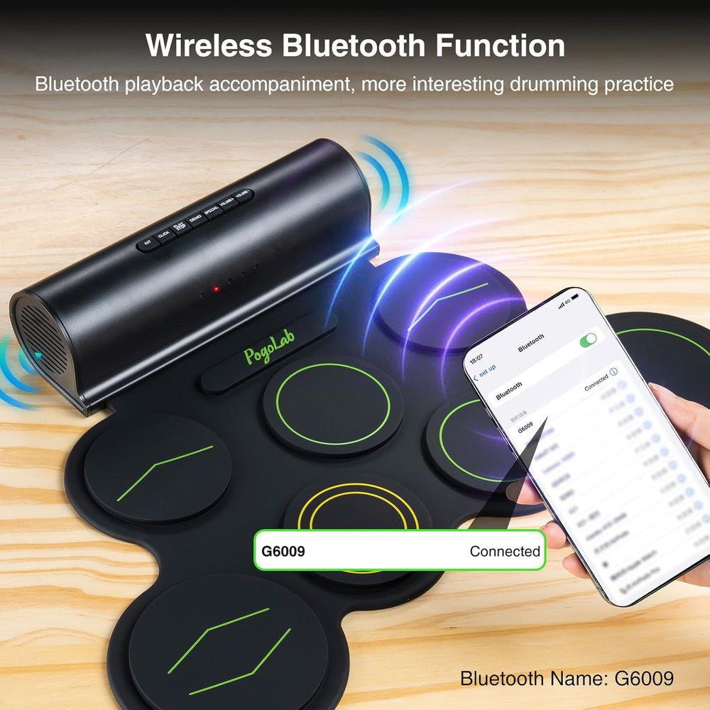 POGOLAB Aufrollen E-Drum Set, 7 digitale Drum Pad Schlagzeug Elektronisch, Drahtlose Funktion, mit z