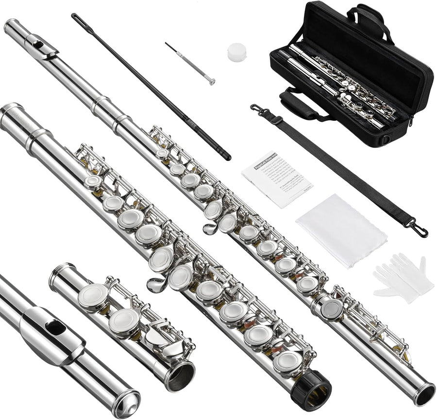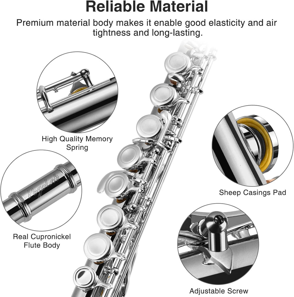 POGOLAB Flöte, C Fussstück, Geschlossenem Loch, Schülerflöte mit geteiltem E/Offset-G, Flötenetui/Fl