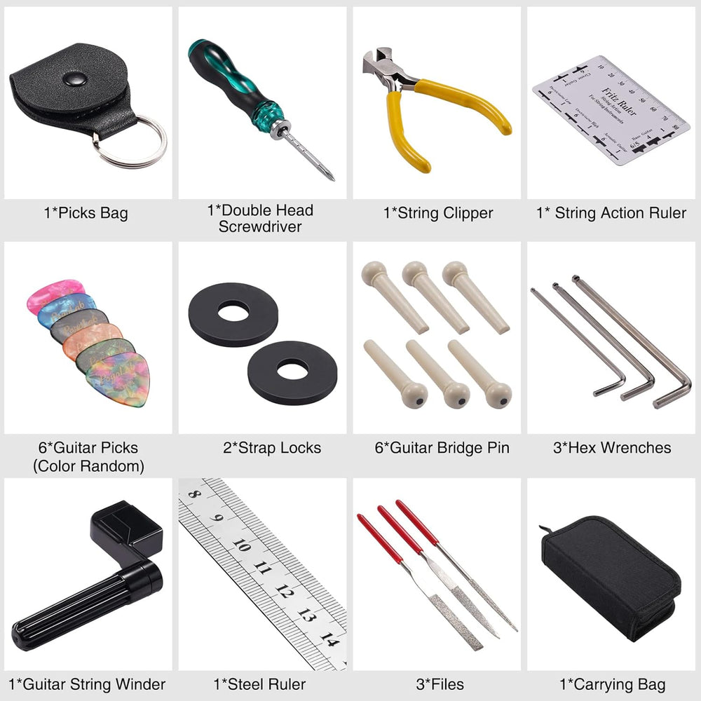 POGOLAB Gitarren Werkzeug Reparatur Set, 31 Stk Gitarren Bausatz mit Saitenkurbel Akustische Gitarre