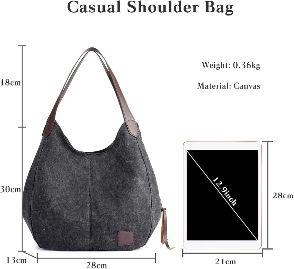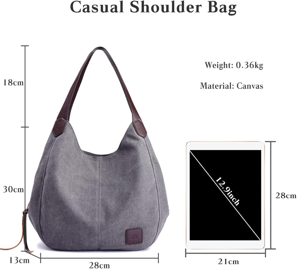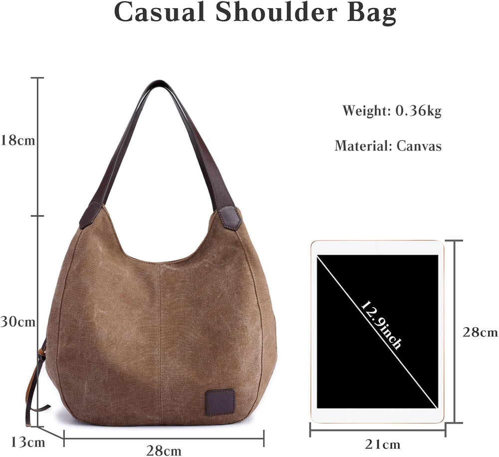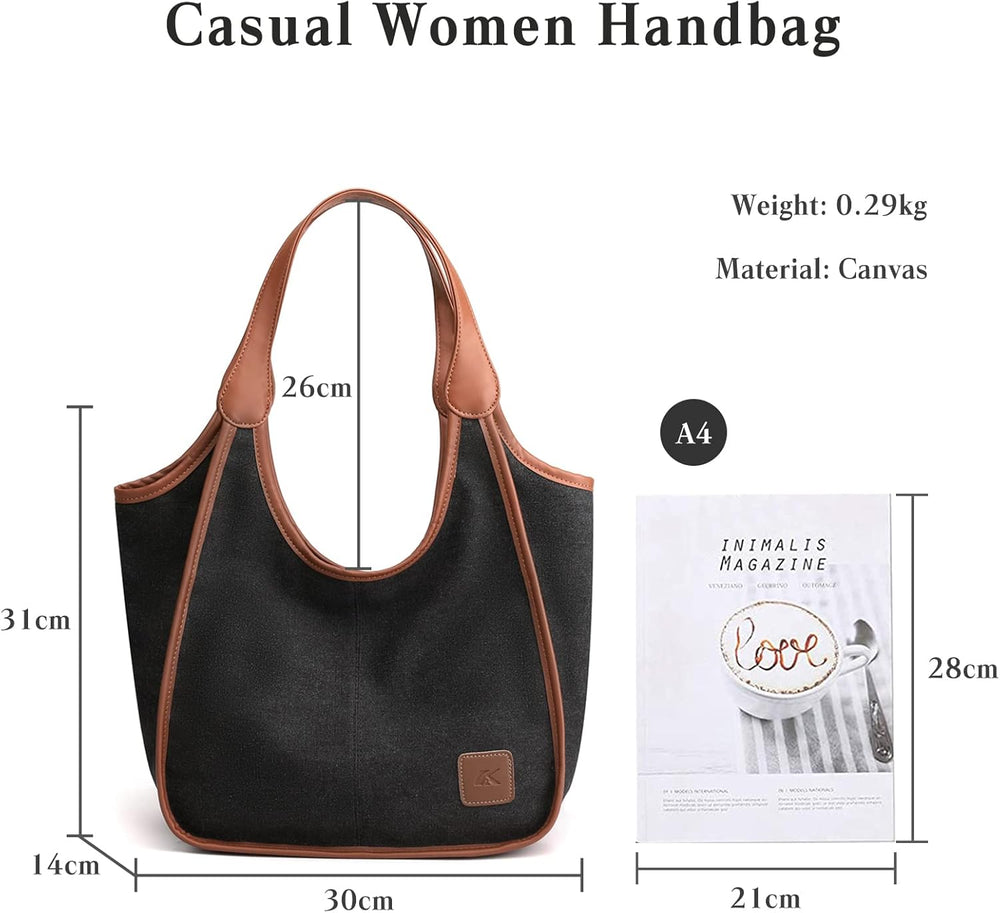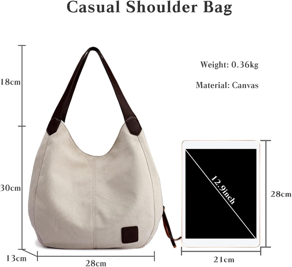 PORRASSO Damen Handtasche Canvas Hobo Schultertasche Fraue Shopper Henkeltasche für Einkaufen Schule
