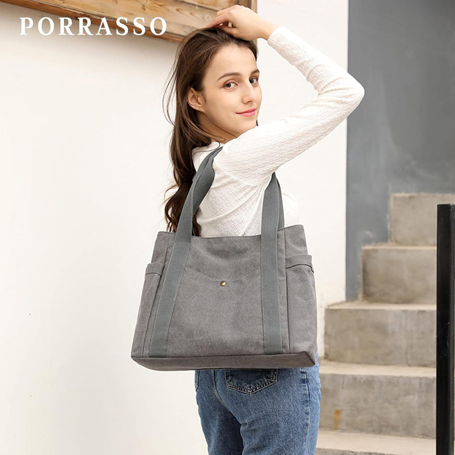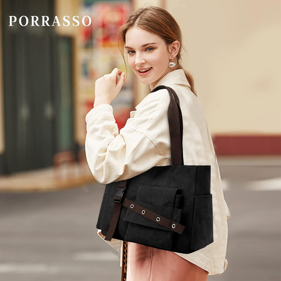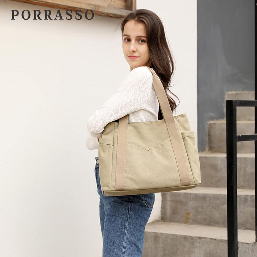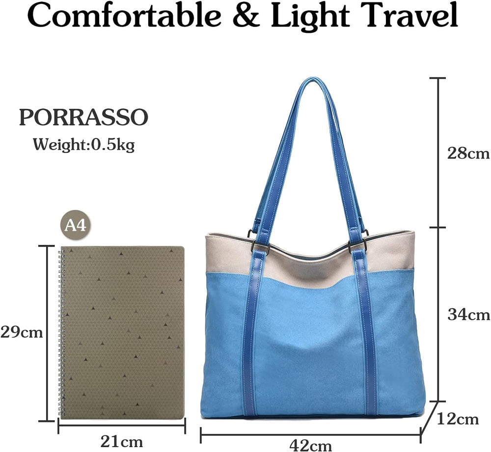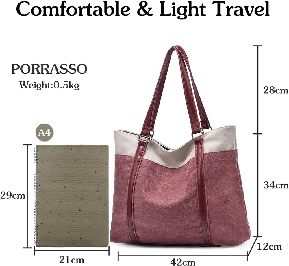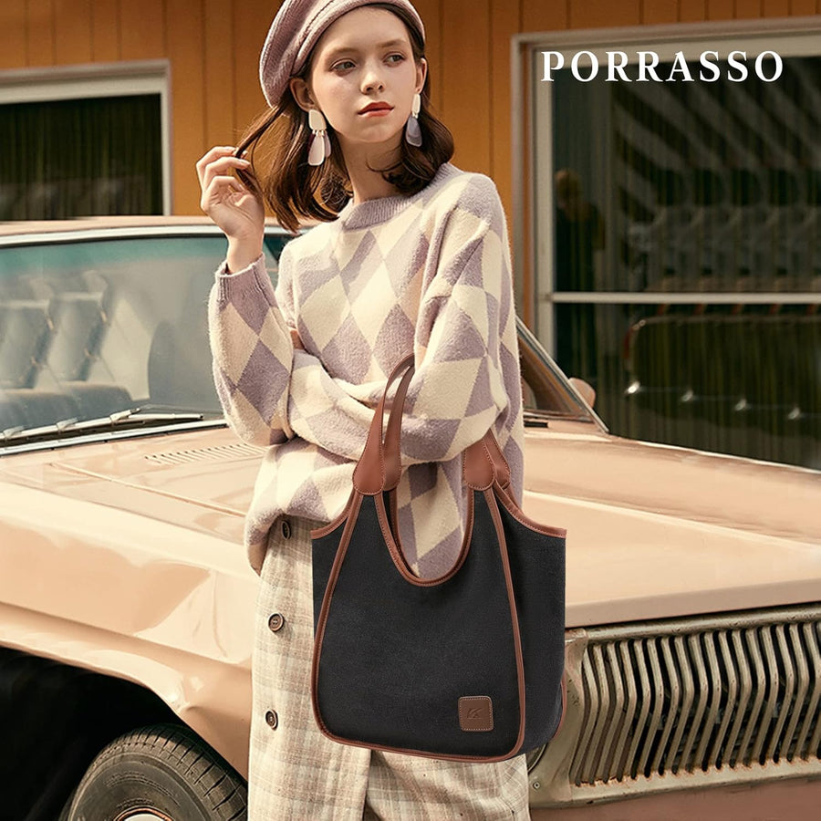 PORRASSO Damen Handtasche Gross Schultertasche Casual Shopper Leinwand Strandtasche für Büro Schule