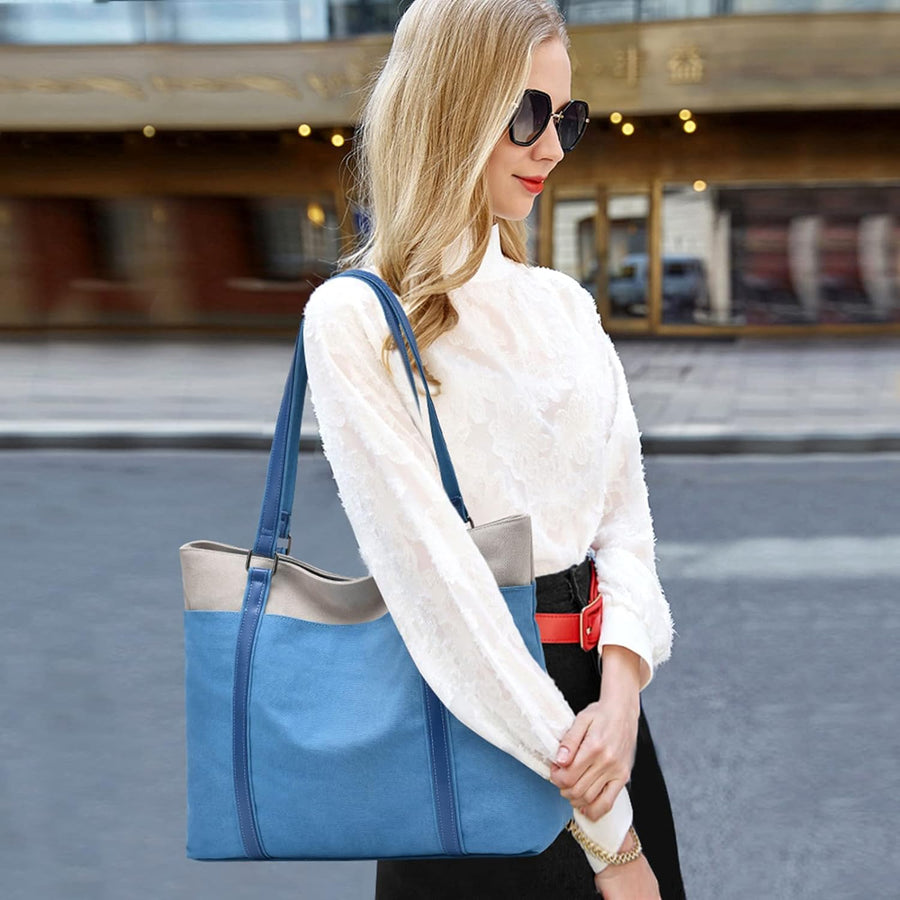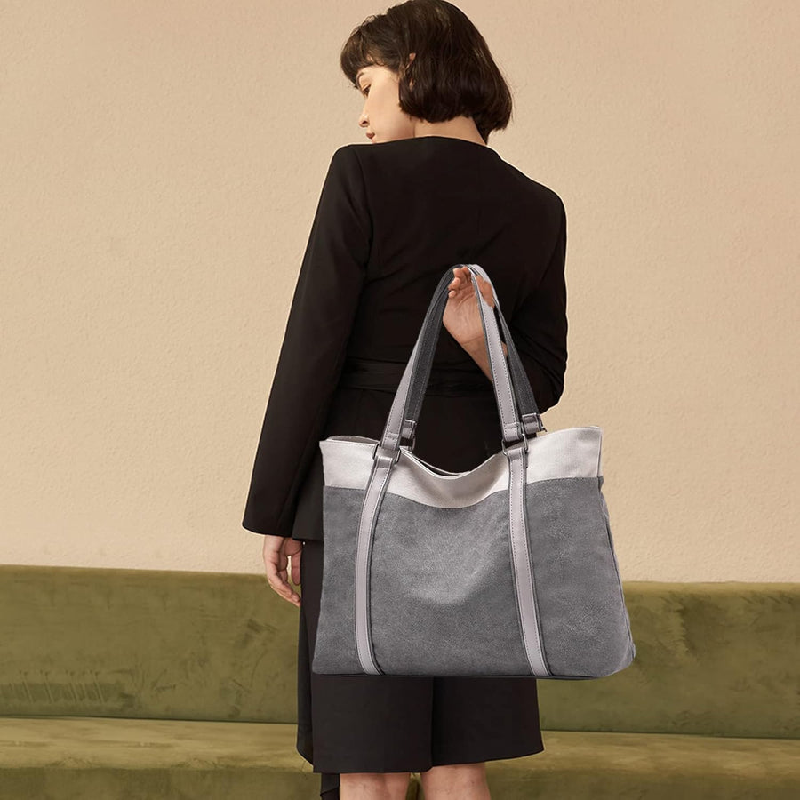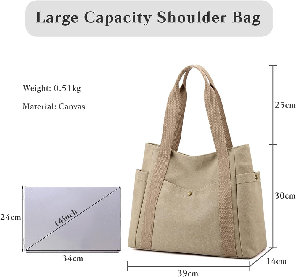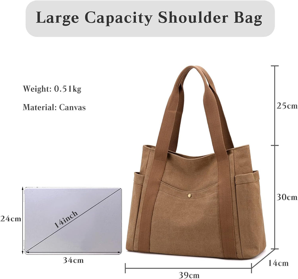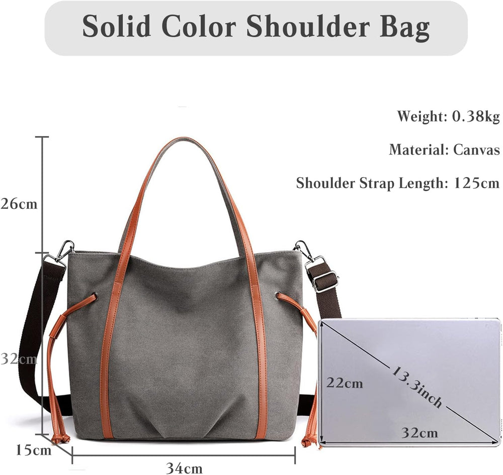PORRASSO Damen Handtasche Gross Schultertasche Casual Shopper Leinwand Strandtasche für Büro Schule