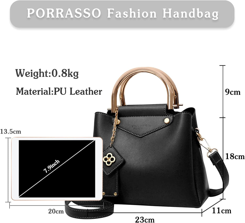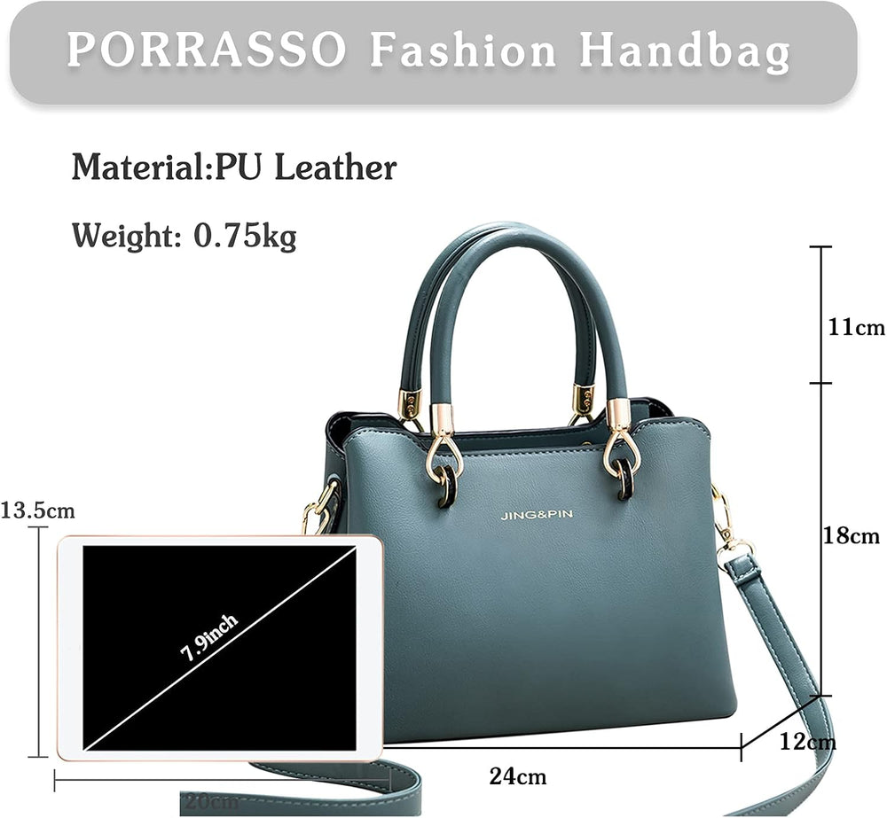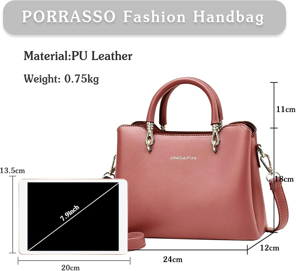 PORRASSO Damen Handtasche Mode Henkeltasche Frauen Umhängetasche PU Leder Schultertasche Top Griff T