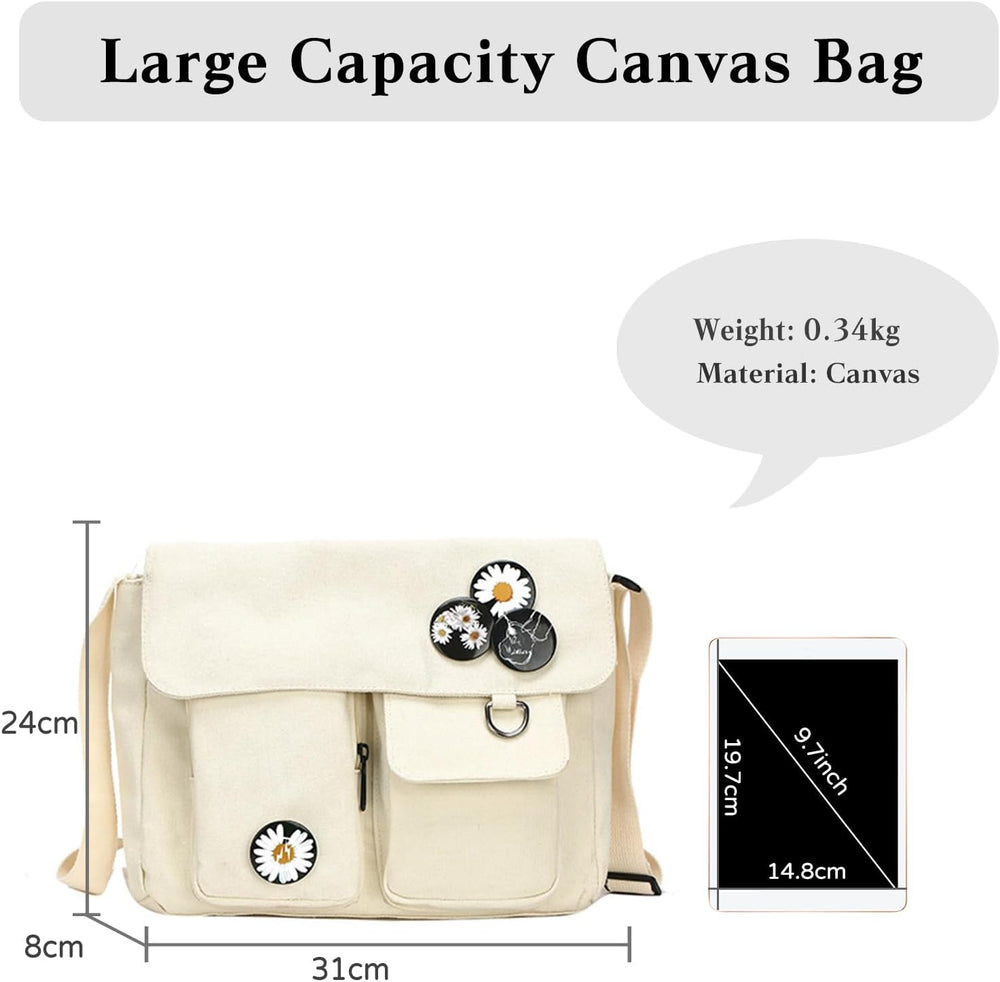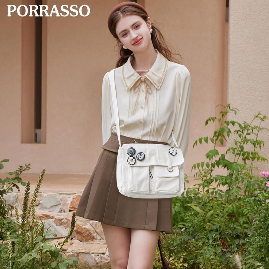 PORRASSO Casual Umhängetasche Damen Canvas Schultertasche Mädchen Messenger-Tasche für Arbeit Schule