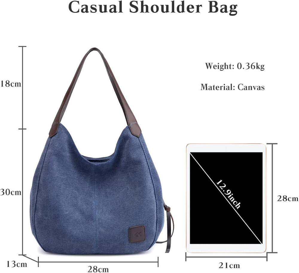 PORRASSO Casual Schultertasche Damen Segeltuch Handtasche Umhängetasche Mädchen Hobotasche Crossbody