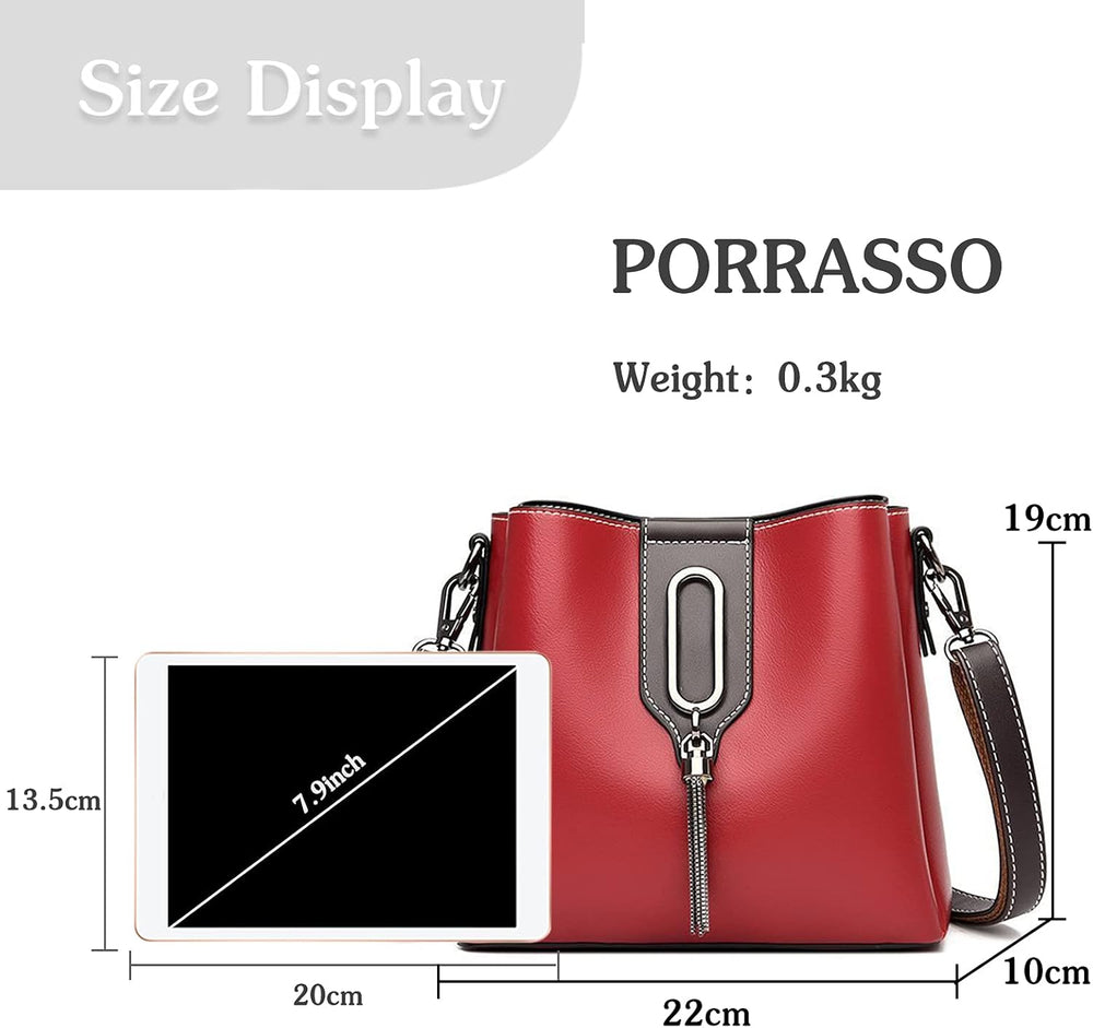 PORRASSO Damen Handtasche Mode Beuteltasche Umhängetasche Henkeltasche Hobo Taschen Leder Wasserdich