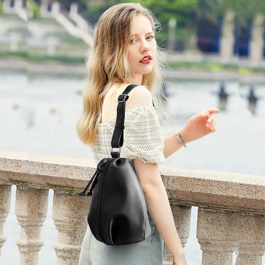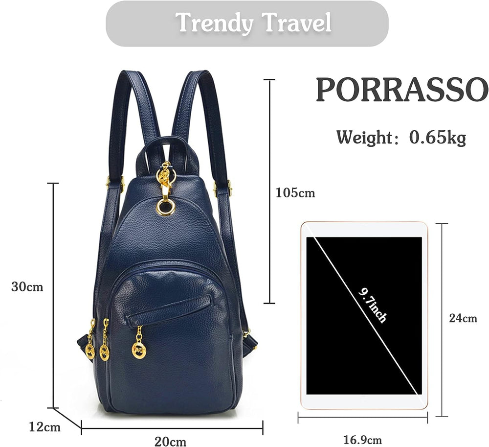 PORRASSO Damen Brusttasche Klein Rucksack Mode Sling Bag Frauen Schultertasche Wasserdicht PU Leder