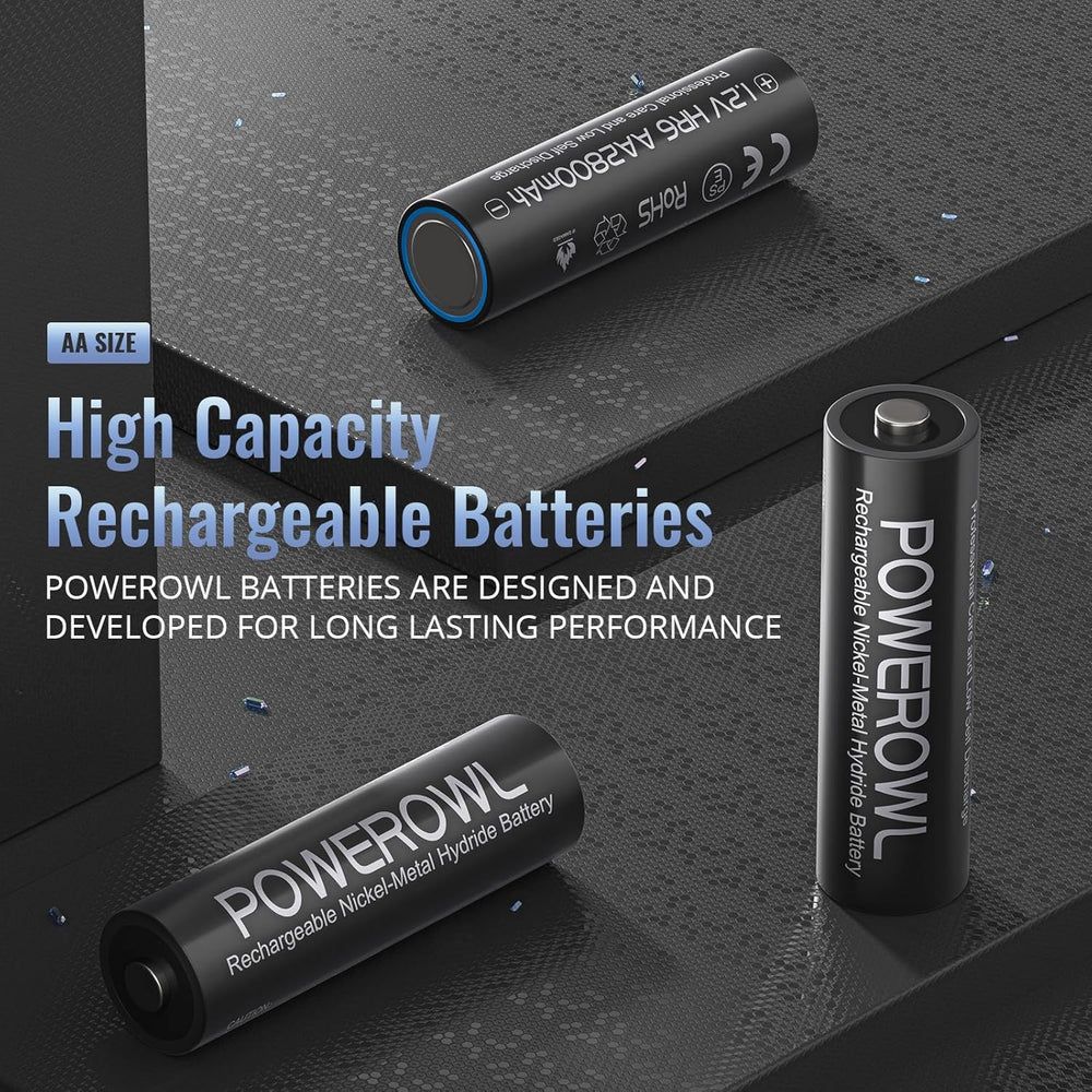 POWEROWL AA Akkus 1,2 V NiMH 8 Stück hohe Kapazität 2800mAh Akku AA 1200 Zyklen 8*AA, 8*AA