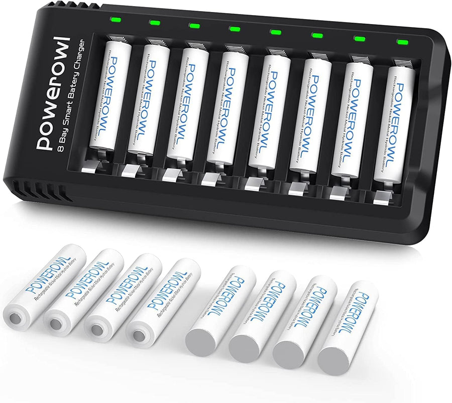 Powerowl Akku Ladegerät mit AAA Akku 1000mah 8 Stück, AA Akkuladegerät 8 Steckplatz Micro-USB Anschl