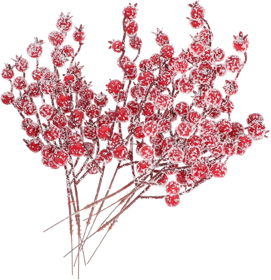 PRETYZOOM 10 Stück Künstliche Beerenstängel Schnee Gefrostet Gefälschte Beerenzweige Kleben Stechpal