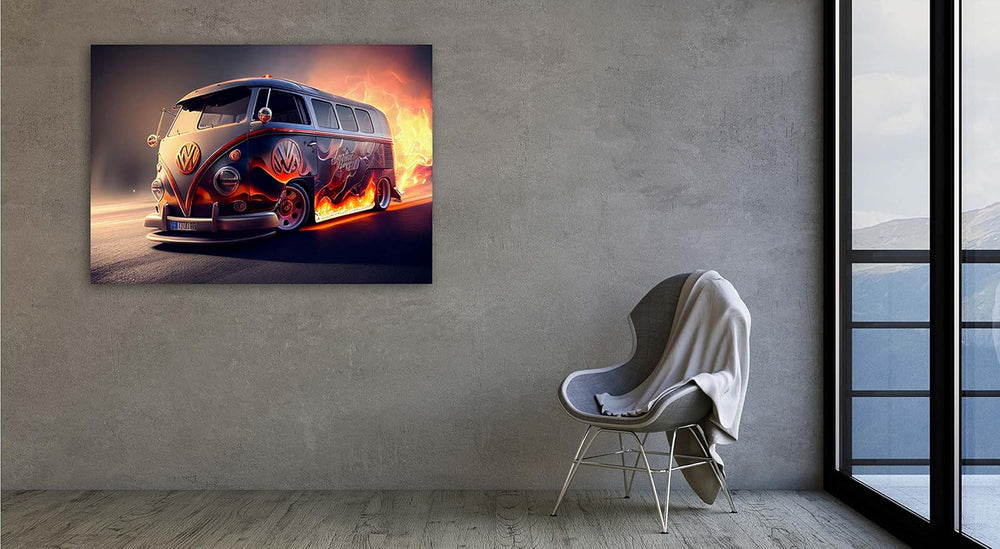 PRINTONIA Leinwandbild 120x80 cm Volkswagen VW-Bus Bulli T1 Transporter Oldtimer Abstrakt Art Automo