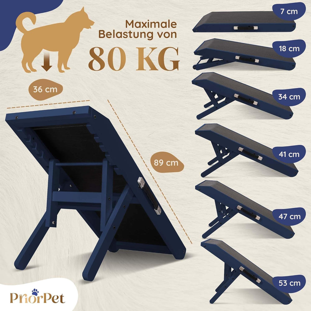 Hunderampe - Hundetreppe für kleine Hunde und grosse Hunde - Einstellbar 18-53 cm - Für Bett Sofa -