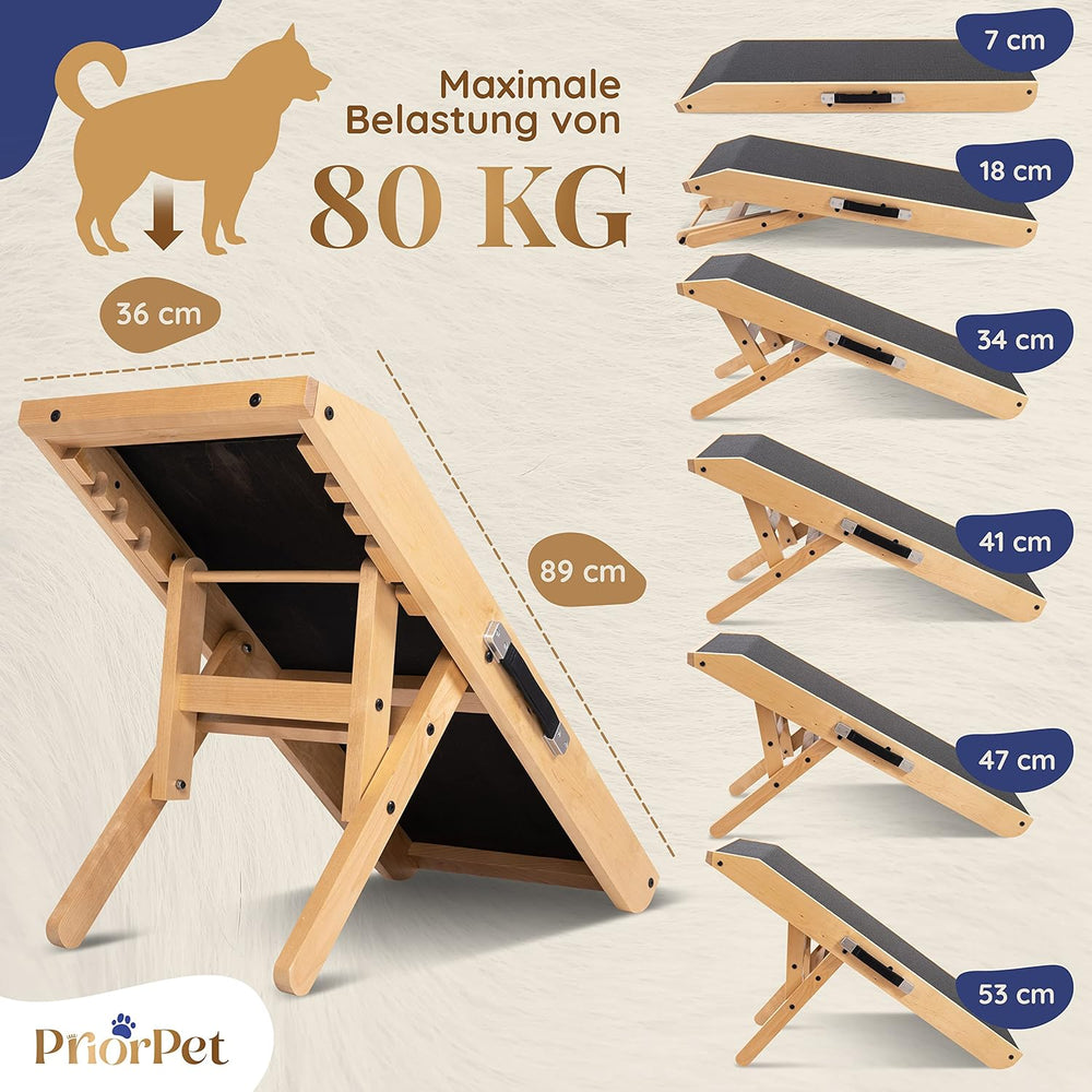 Hunderampe - Hundetreppe für kleine Hunde und grosse Hunde - Für Bett und Sofa - Birkenholz - 5 Edle