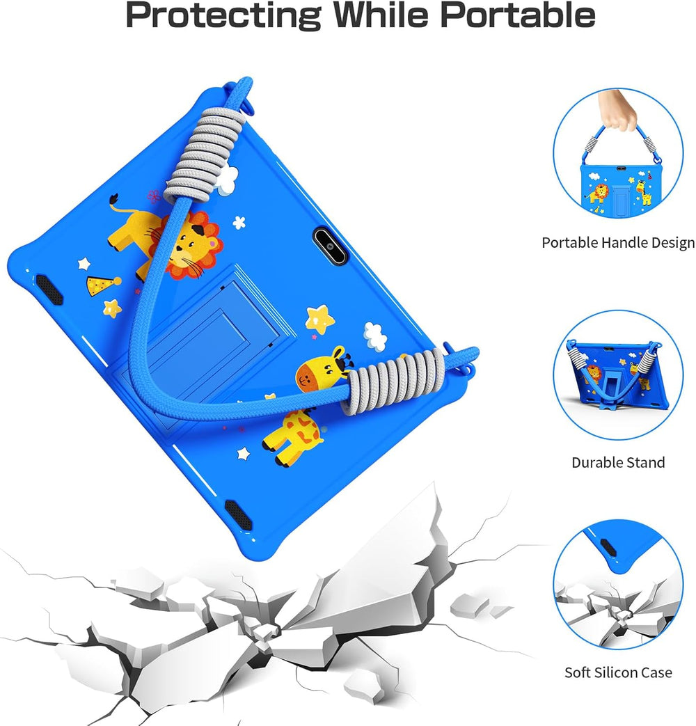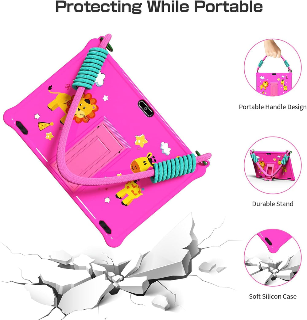PRITOM 10 inch Kids Tablet Android 13 Tablets with Lanyard 64GB, 512GB Expand, Toddler Tablet for Ki