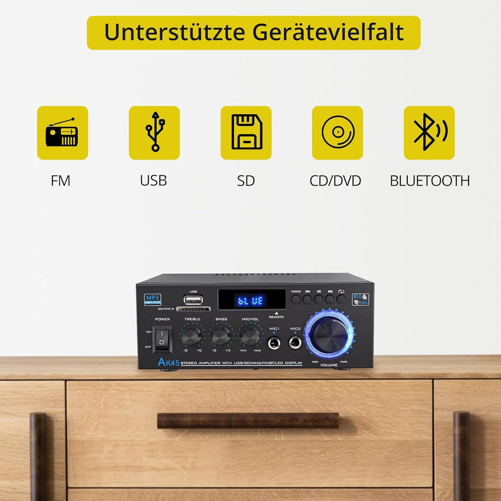 PROZOR Verstärker HiFi Digitaler Audio Verstärker Audio Power Stereo Verstärker AK-45 Receiver Bluet