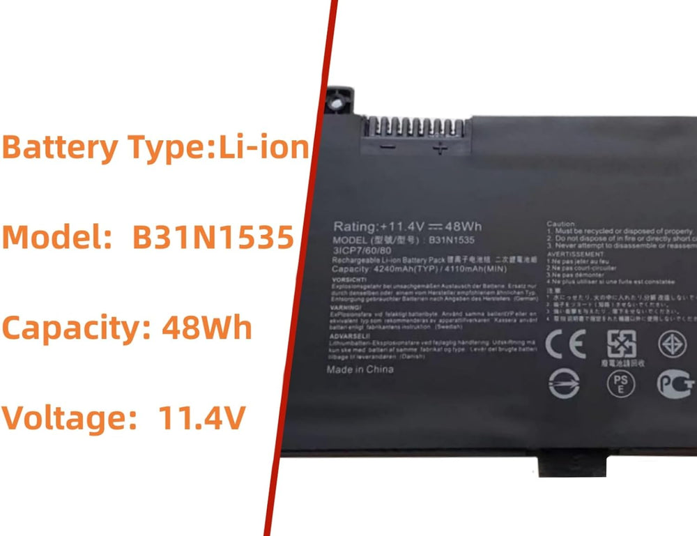 PUGASR B31N1729 Laptop Akku Kompatibel mit ASUS VivoBook S15 S5300F S5300U S5300UN X530FN X530 X530U