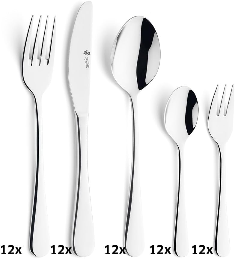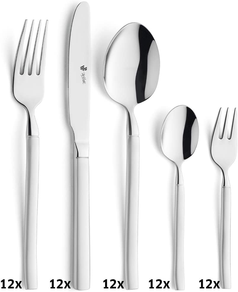 Paul Wirths PURE Besteck Set 12 Personen | 60-teilig | 18/10 Edelstahl Essbesteck poliert | Bestecks