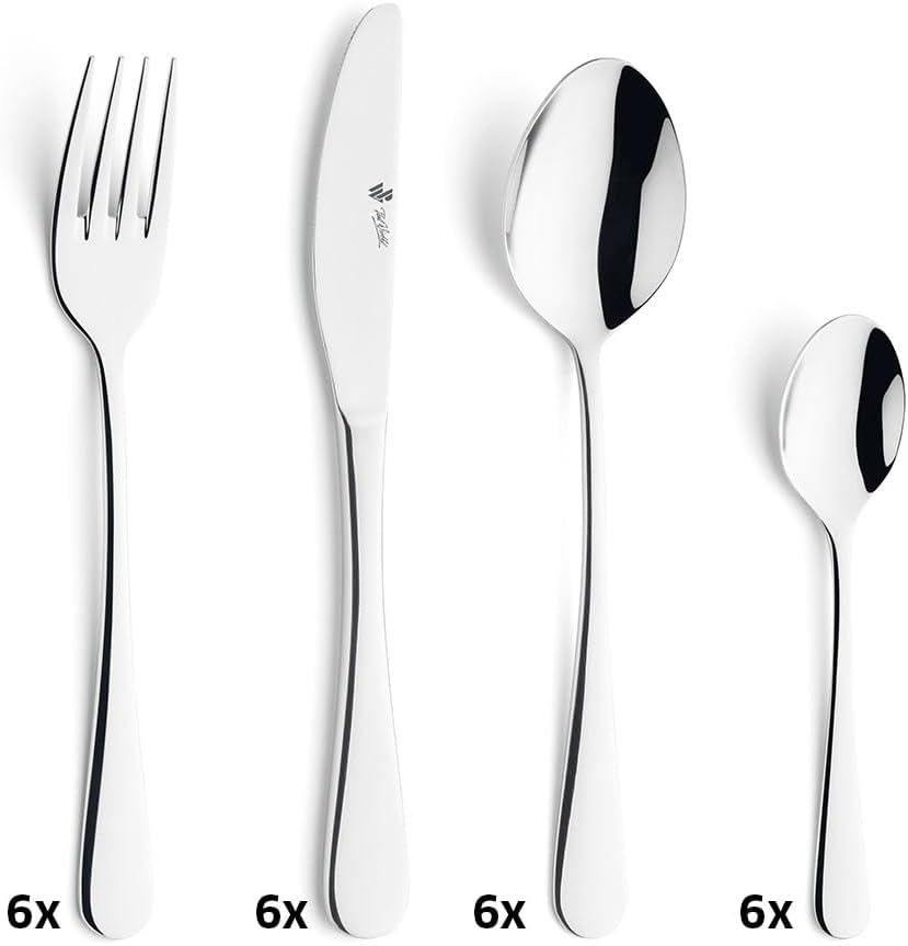 PW Paul Wirths CULTURA 44 Besteck Set für 6 Personen | Essbesteck 24-teilig | Edelstahl rostfrei, po