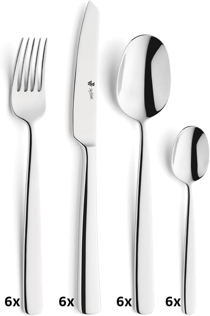 Paul Wirths COMO Besteck Set 6 Personen | 24-teilig | Klingenstahl 13/0, Edelstahl 18/10 | Spülmasch