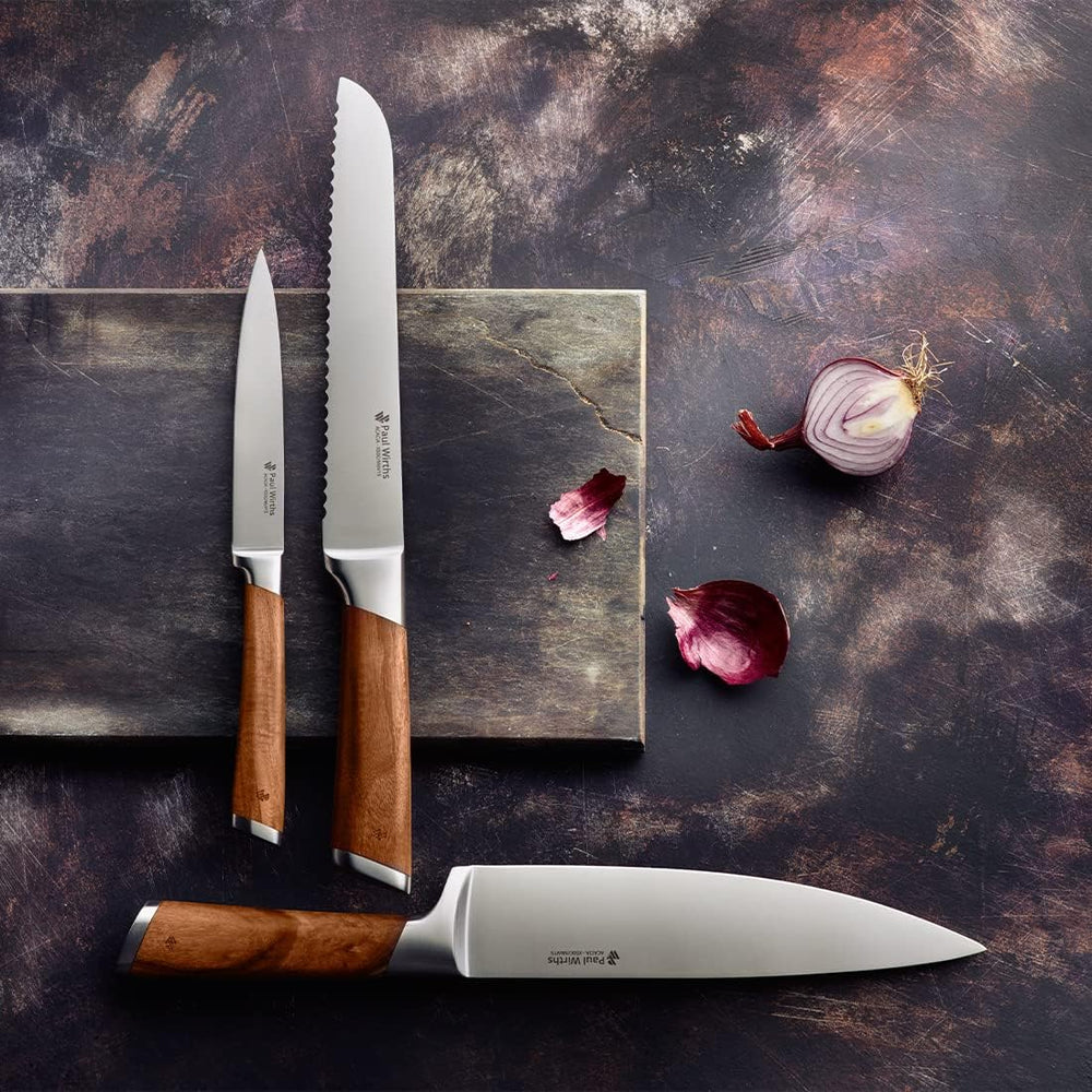 Paul Wirths SURU Tranchiermesser aus Damast- Stahl und Akazienholz Griff, mit 20 cm Klinge, extrem s