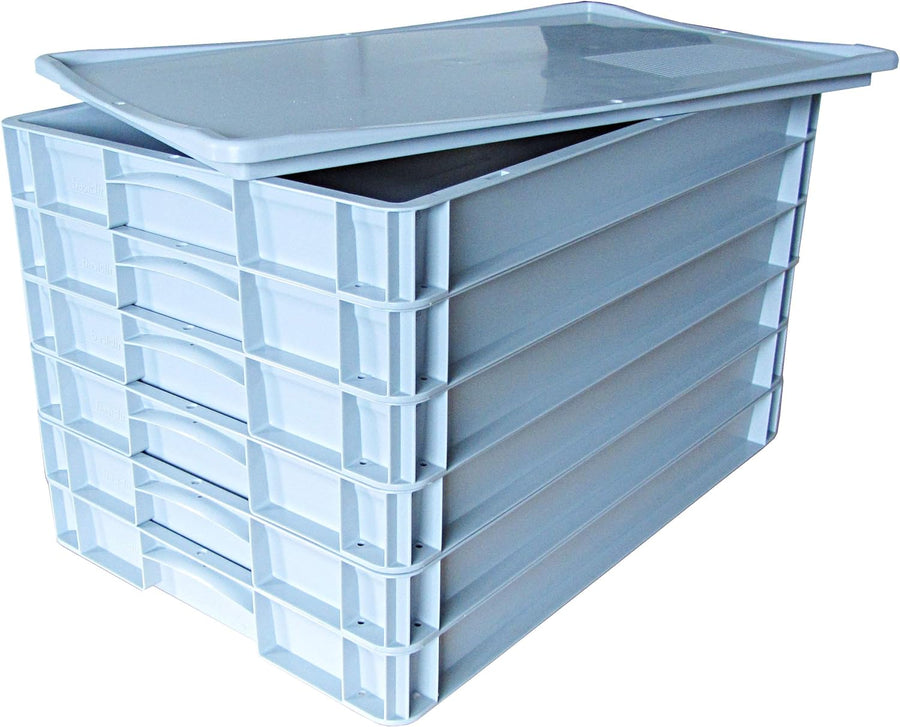6x Pizzaballenbox (Farbe grau) + 1 Auflagedeckel (Farbe grau), Pizzaballenbehälter, Pizzateigbehälte
