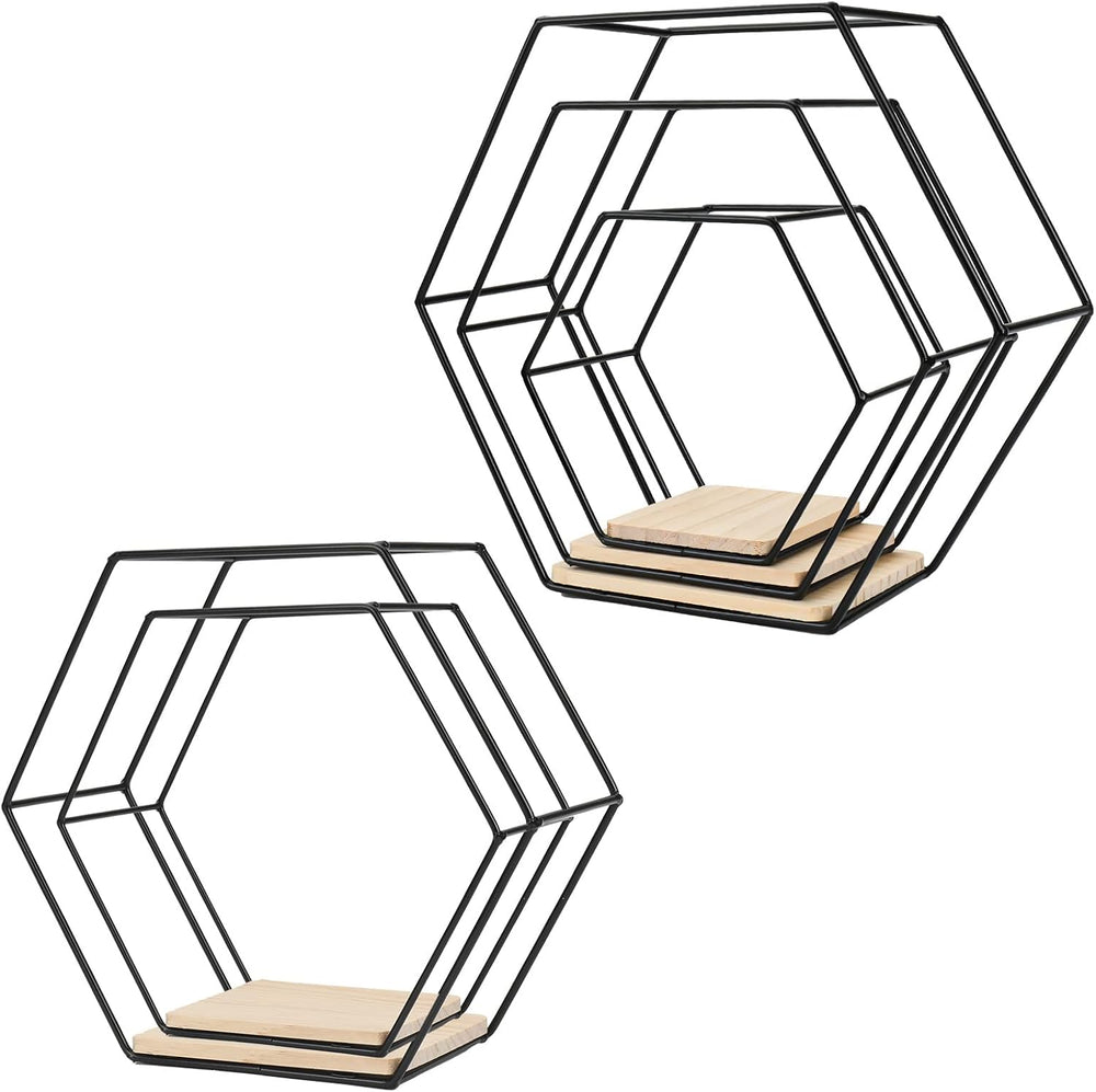 Hexagon Wandregal Schwarz Metall 5er Set, Regal Wand Deko Hängeregal Loft Wandregale, Regal Schwarz