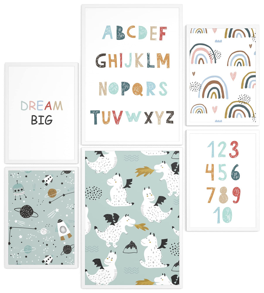 Papierschmiede® Bilder Kinderzimmer Kids Mood Poster Set ABC Dragon Space, Kinderzimmer Bilder Babyz