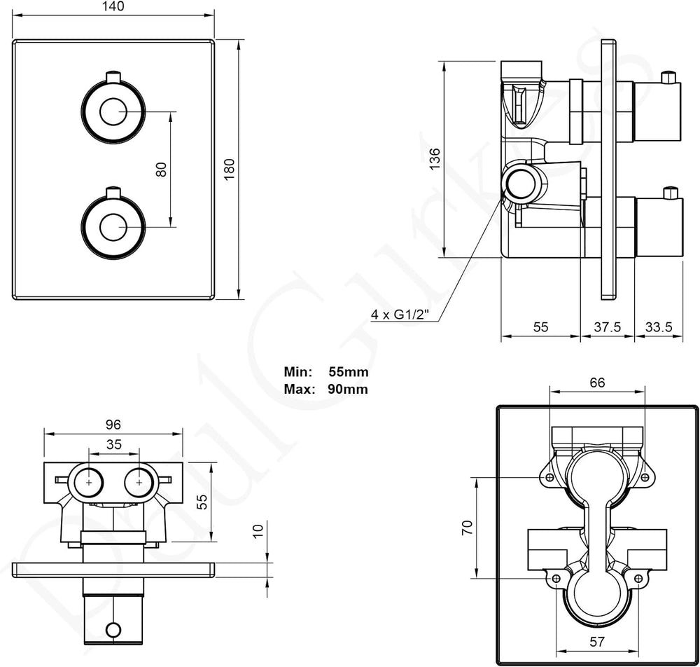 PaulGurkes Thermostat Brausebatterie Unterputz Armatur eckig Duscharmatur