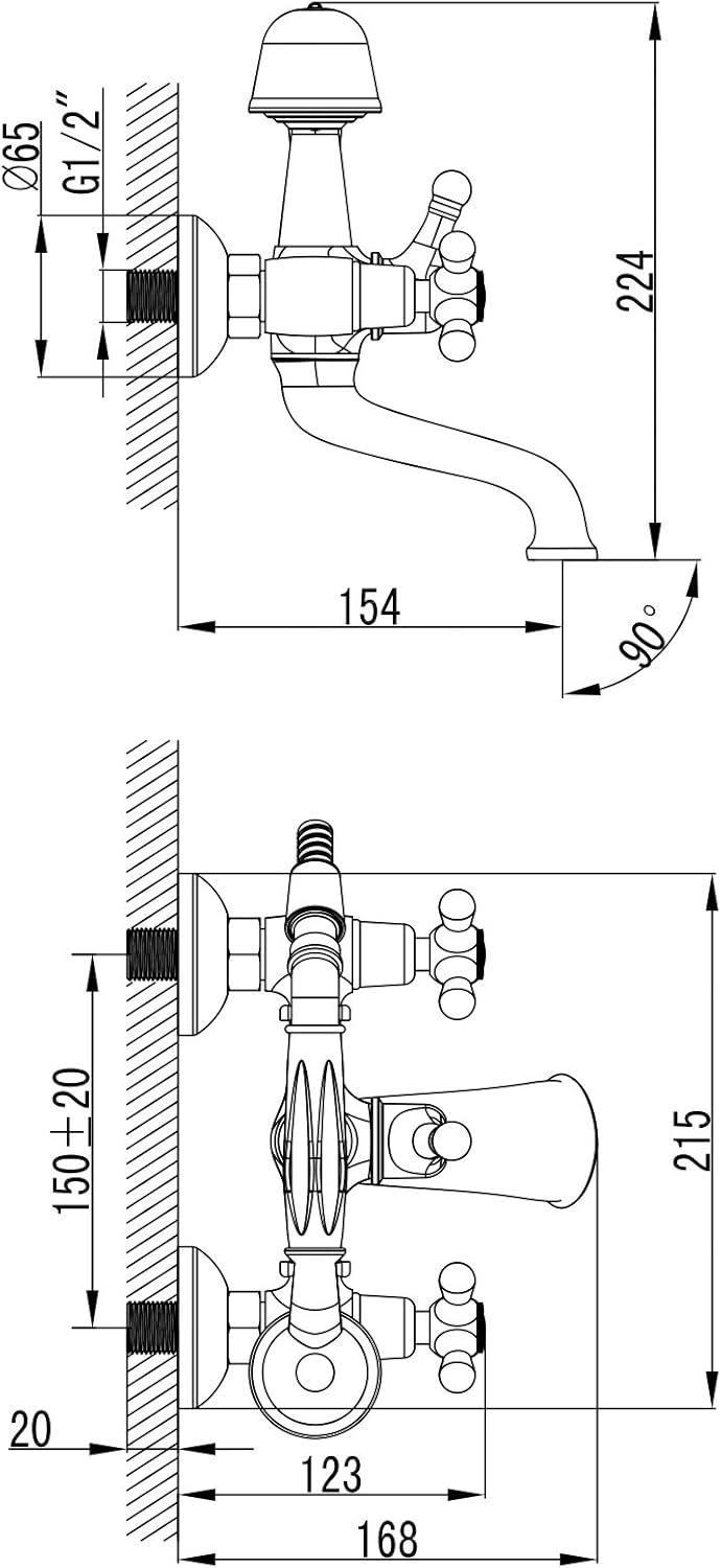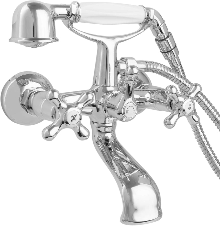 PaulGurkes Nostalgie Retro Wannenarmatur Mischbatterie mit Duschkopf Zweigriffmischer Wannenfüllarma