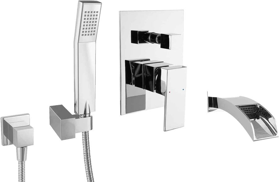 PaulGurkes eckiges Wannenset Komplett Schwalleinlauf Badewannen Unterputz Set Wasserfalleinlauf Wann